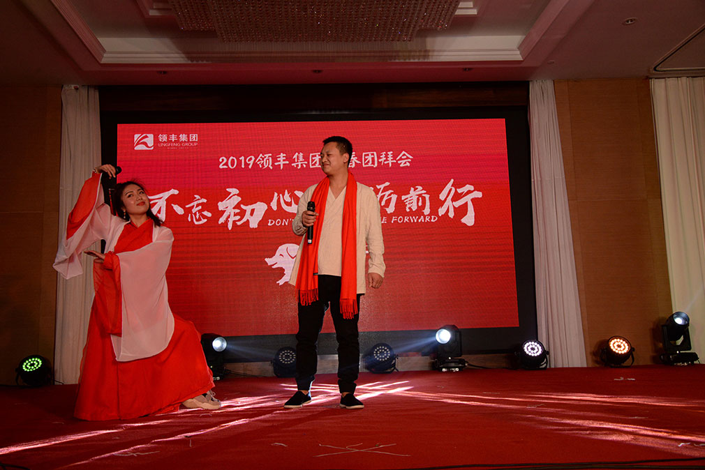 “大家晚上好!今天,我們歡聚一堂,首先我謹代表領(lǐng)豐集團全體員工,向各位來(lái)賓的到來(lái)表示熱烈的歡迎,向全體員工的辛勤工作致以深深的謝意!感謝各位一年來(lái)在各自崗位上所付出的辛勤勞動(dòng),以及在工作中表現的敬業(yè)精神,正是因為您們的付出,才有了領(lǐng)豐碩果累累的2018。感謝所有的合作伙伴,是您們的信任與支持幫助我們成就了精彩的2018。今天,我們有幸邀請到他們當中的杰出代表,讓我們用掌聲熱烈歡迎他們的到來(lái)。感謝每一位領(lǐng)豐家人以及家屬們,是您們的堅定支持與默默奉獻鑄造了領(lǐng)豐驕人的業(yè)績(jì)。”